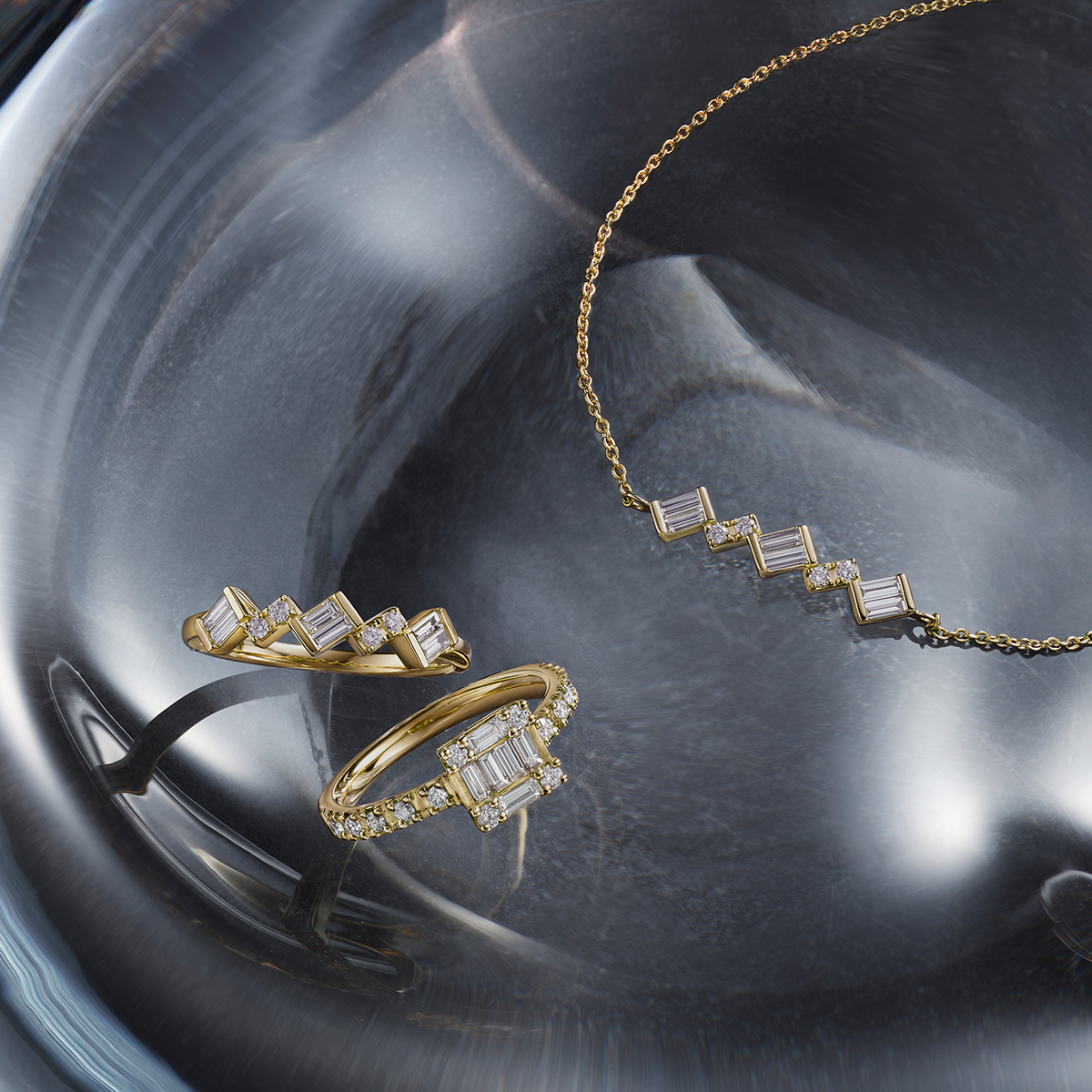 テーパーカットダイヤモンドの透明な輝きは、